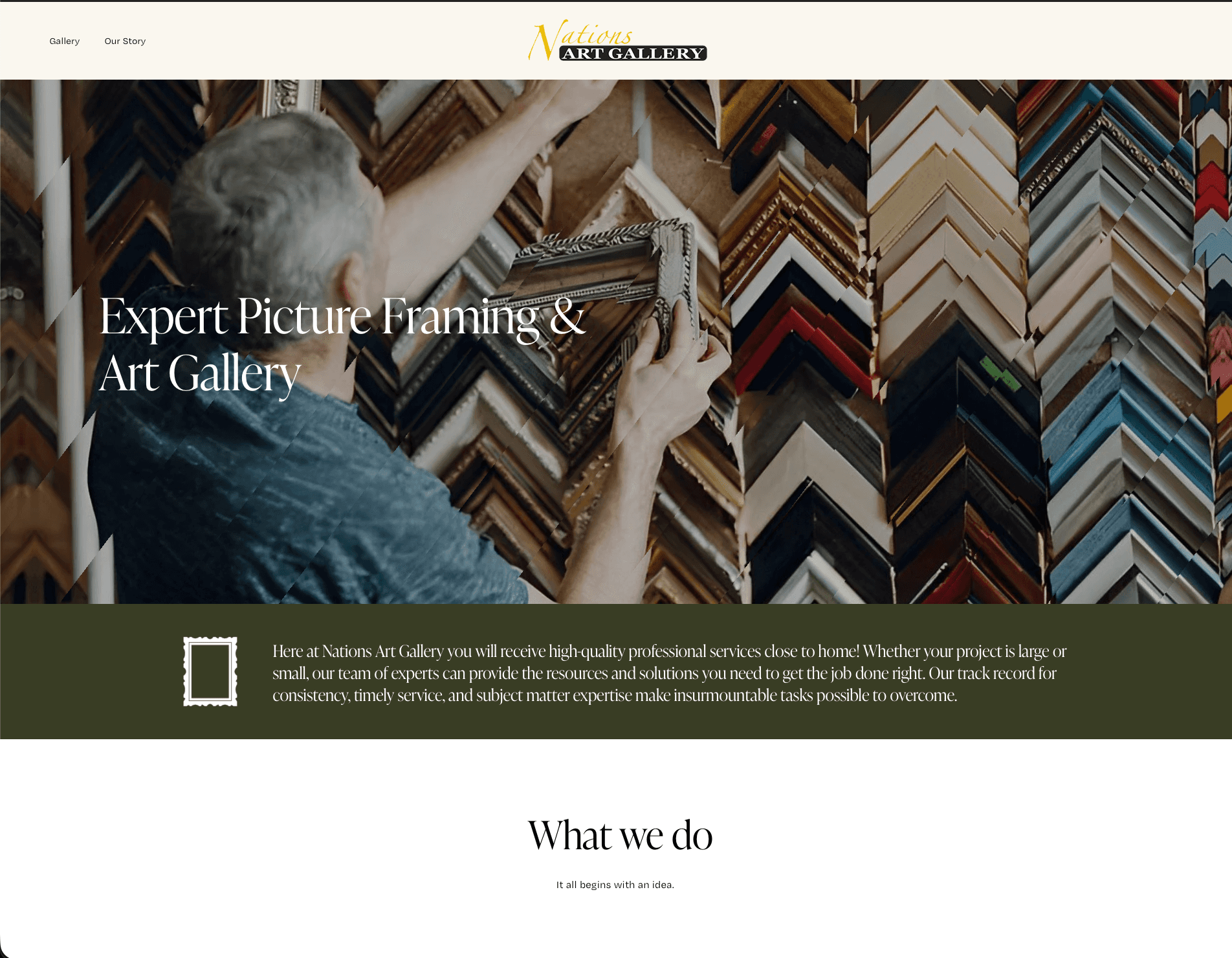 Nations Art Gallery is a Pennsylvania-based gallery that sells paintings and fine art, but their website didn't reflect the quality of what they actually sell. The existing site was outdated, hard to navigate, and gave visitors no real way to explore the collection, read about the gallery, or trust the business before walking in or making a purchase.