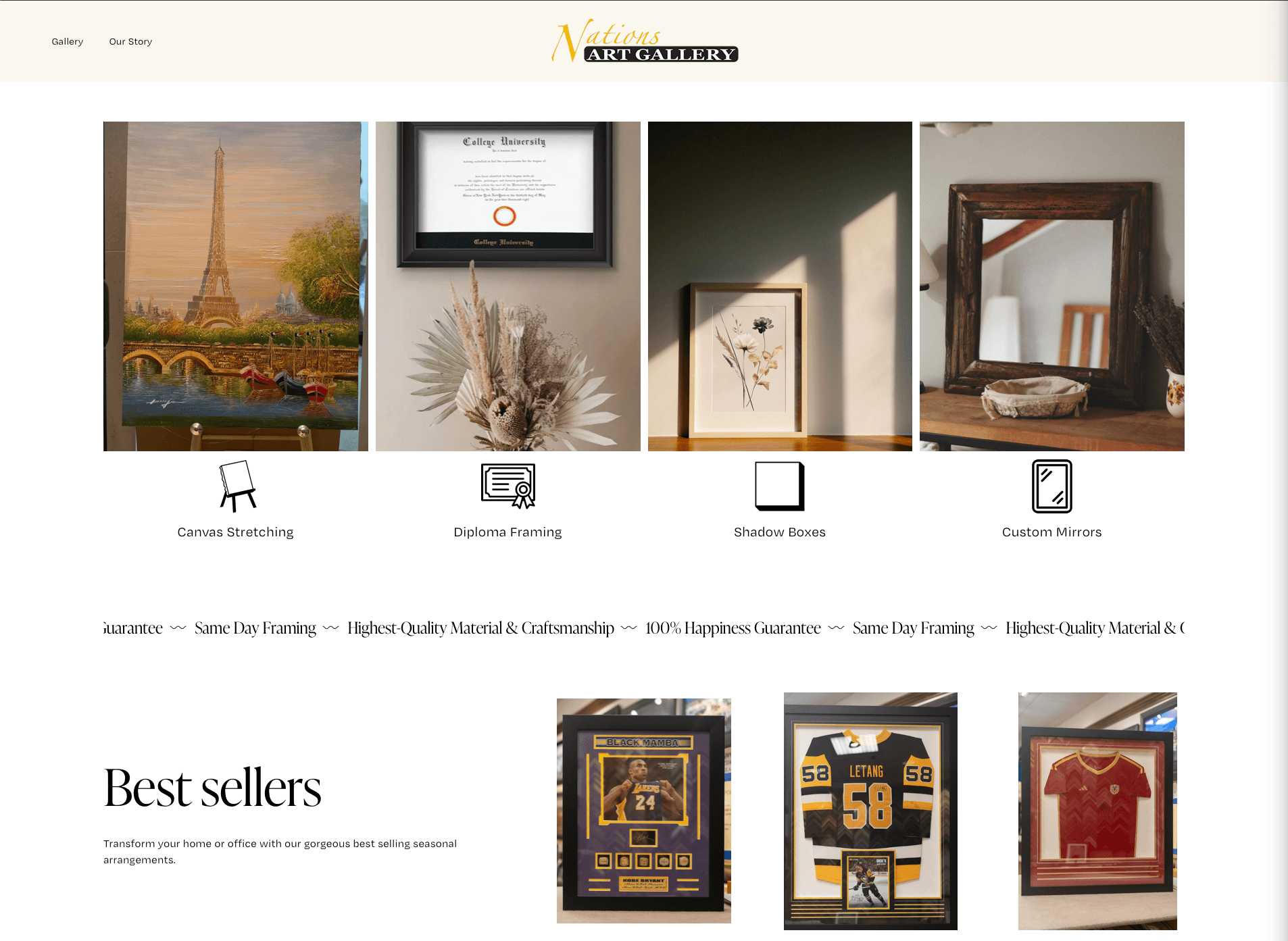 Delivered a fully redesigned website giving Nations Art Gallery a modern, trustworthy digital presence that matches the quality of their physical space. The site includes a full collection gallery, customer reviews, location information, and contact flow.